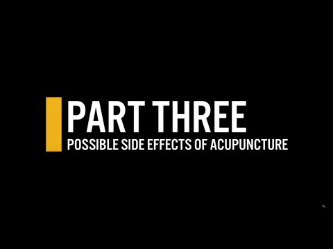 Los riesgos de la acupuntura son bajos si tiene un acupunturista competente y certificado que utiliza agujas estériles. Los efectos secundarios comunes incluyen dolor y sangrado leve o moretones donde se insertaron las agujas.